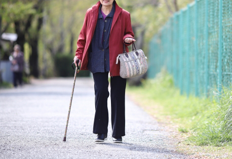 自宅内も、杖をついて歩いていた