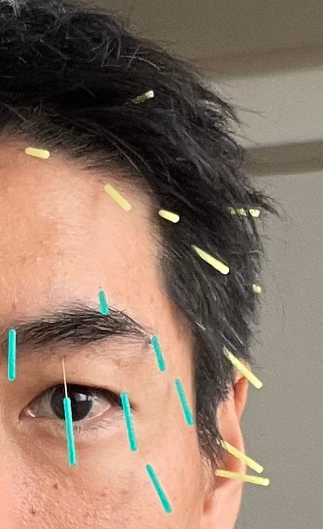 ということで、左顔面の筋肉を動かしやすくするために、左側を中心に自分で鍼をしました。
