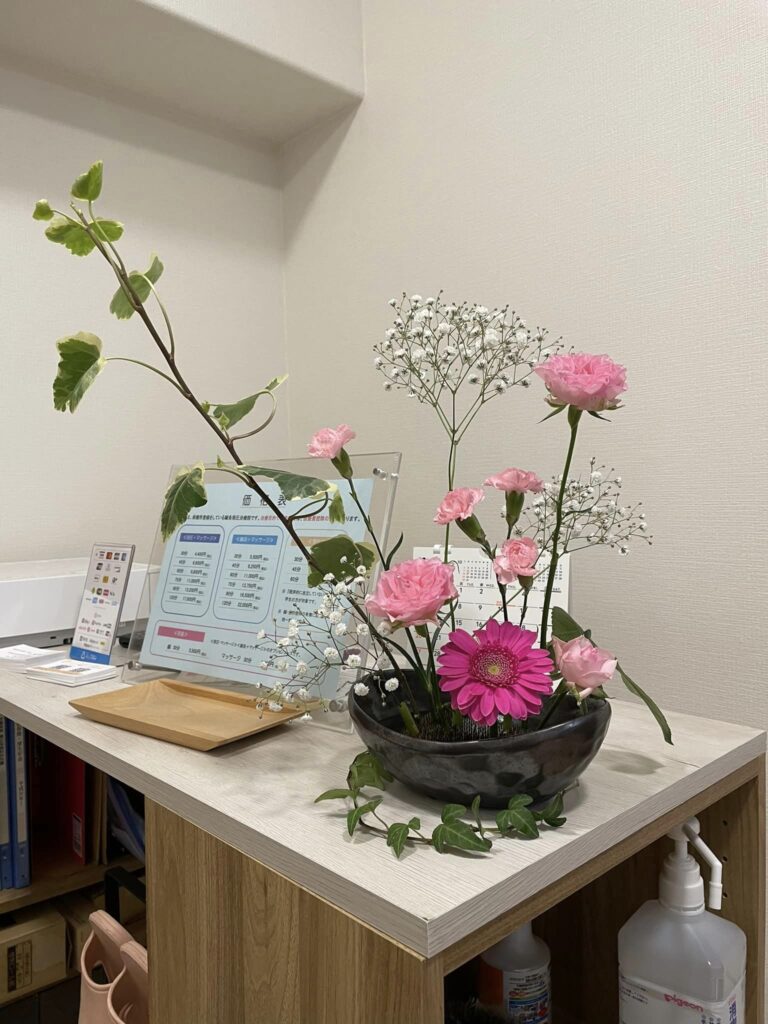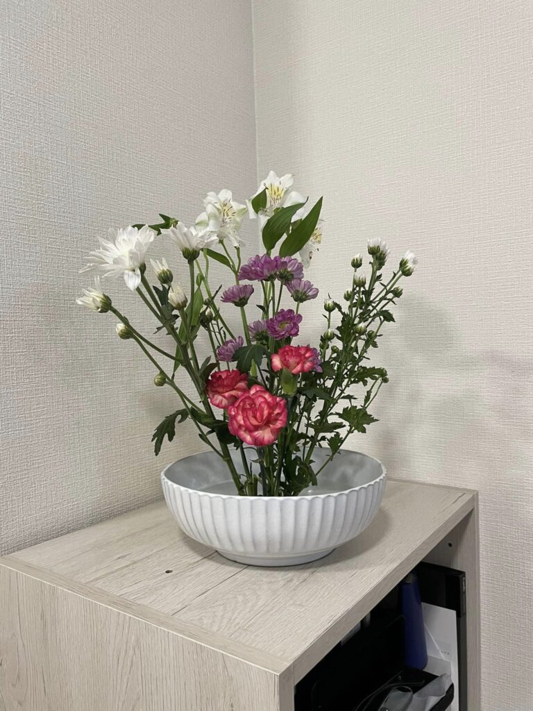 中学2年生の長女と小学5年生の次女、それぞれ花を生けてもらいました。